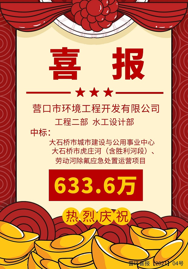 營(yíng)口市環(huán)境工程開發(fā)有限公司中標(biāo)大石橋市城市建設(shè)與公用事業(yè)中心大石橋市虎莊河(含勝利河段)、勞動(dòng)河除氟應(yīng)急處置運(yùn)勞項(xiàng)目